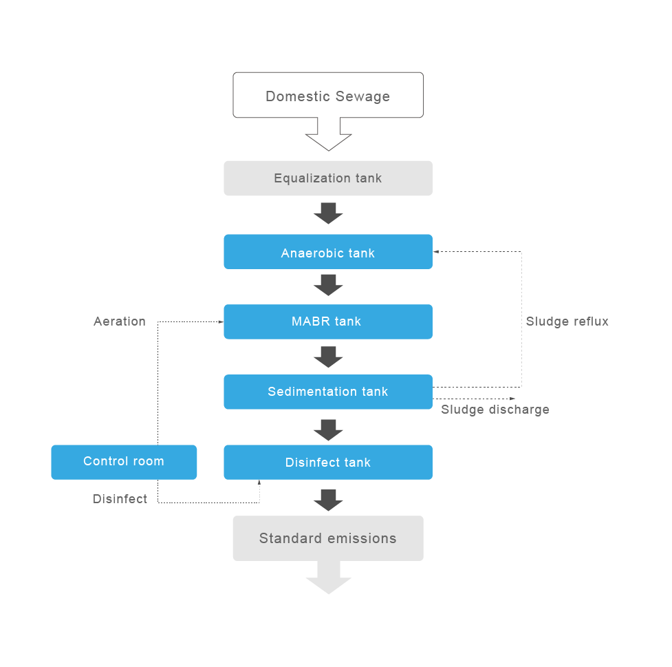 Dieses containerbasierte Abwasserbehandlungssystem nutzt fortschrittliche MABR-Technologie (Membranbelüfteter Biofilmreaktor) und ist dank seiner kompakten Bauweise im Seefrachtcontainerformat leicht zu transportieren und schnell einsatzbereit. Das Verfahren verwendet sauerstoffdurchlässige Membranen, um Nitrifikation und Denitrifikation gleichzeitig effizient zu unterstützen und so eine hervorragende Nährstoffentfernung bei minimalem Energieverbrauch zu ermöglichen. Das Abwasser durchströmt die integrierten MABR-Module, in denen ein Biofilm organische Stoffe und Stickstoff auf natürliche Weise abbaut. Anschließend erfolgt die Klärung und Desinfektion. Diese hocheffiziente, autarke Einheit liefert ein gleichbleibend hochwertiges Abwasser, das zur Einleitung oder Wiederverwendung geeignet ist und somit eine nachhaltige und energiesparende Lösung für dezentrale Anwendungen bietet.