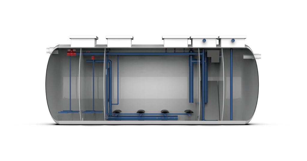 Dieses für die dezentrale Behandlung von Industrie- oder kommunalem Abwasser konzipierte Horizontaltanksystem verarbeitet täglich mehrere zehn Tonnen Abwasser in einem kontinuierlichen, geschlossenen Durchflusssystem. Das Abwasser durchläuft zunächst eine Primärzone zur Sedimentation und anaeroben Vergärung und anschließend einen erweiterten aeroben Bioreaktor, in dem Mikroorganismen organische Stoffe und Nährstoffe abbauen. Nach der Nachklärung im Tank wird das gereinigte Wasser abschließend desinfiziert und erfüllt somit stets die Einleitungs- oder Wiederverwendungsstandards. Die vollautomatische, platzsparende Horizontalbauweise gewährleistet einen zuverlässigen Betrieb mit hoher Kapazität bei minimalem Platzbedarf und geringem Wartungsaufwand.