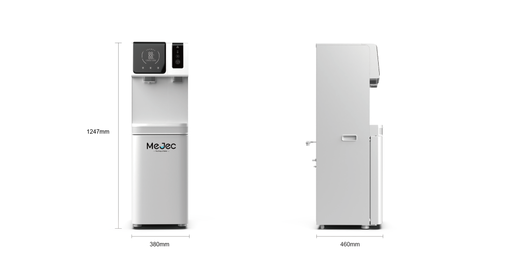 Mejec ist auf Komfort und Benutzerfreundlichkeit ausgelegt. Das Gerät verfügt über ein intuitives Touch-Bedienfeld, das die Bedienung für alle Anwender vereinfacht. In puncto Installation und Funktionalität nutzt das System eine hocheffiziente Wasseraufbereitungstechnologie, die direkt an Ihre Wasserleitung angeschlossen wird und somit den Austausch schwerer Flaschen überflüssig macht. Darüber hinaus bietet Mejec individuelle Anpassungsmöglichkeiten. Das bedeutet, dass wir Installation und Funktionen perfekt auf Ihre spezifischen Büroräume und Nutzungsanforderungen abstimmen können.