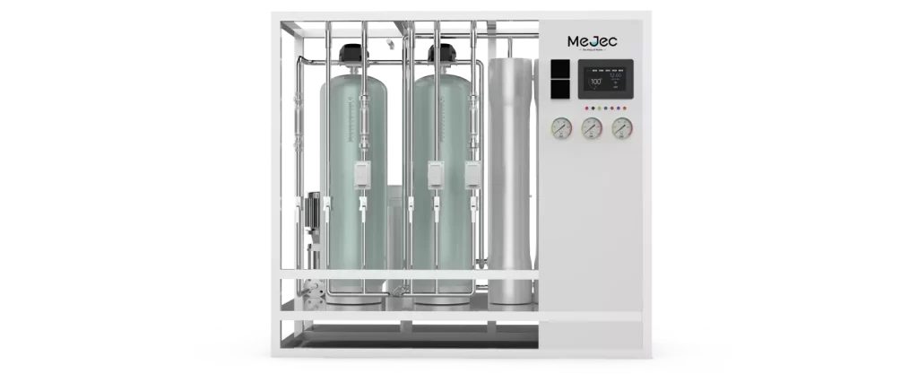 Der Mejec Industriewasserreiniger nutzt fortschrittliche Umkehrosmose (RO) in Industriequalität in Kombination mit mehrstufiger Filtration. Dieses integrierte Wasserversorgungssystem entfernt effektiv gelöste Feststoffe, Schwermetalle und Verunreinigungen und liefert so konstant hochreines Wasser. Dieser Reinheitsgrad ist entscheidend für anspruchsvolle Umgebungen wie Labore und industrielle Prozesse, wo die Wasserqualität direkten Einfluss auf Sicherheit und Effizienz hat.