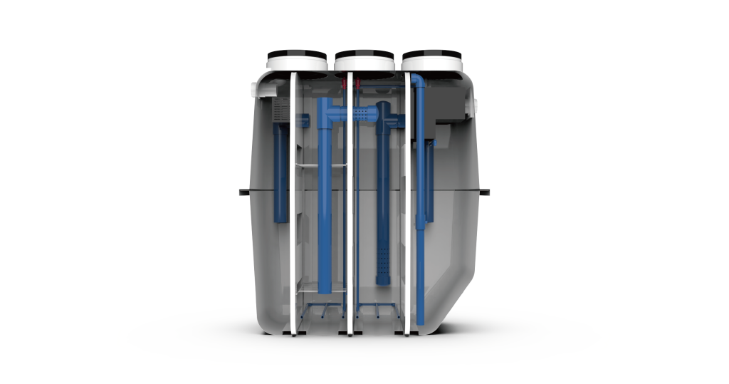 Diese kompakte Kläranlage reinigt Haushaltsabwasser effizient durch ein integriertes, mehrstufiges Reinigungsverfahren. Das Abwasser durchläuft zunächst eine Sedimentations- und Anaerobkammer, in der sich Feststoffe absetzen und zersetzt werden. Anschließend gelangt es in eine aerobe Behandlungszone, wo Sauerstoff Mikroorganismen beim Abbau organischer Schadstoffe unterstützt. Abschließend wird das Wasser geklärt und desinfiziert. Das Ergebnis ist sauberes, umweltverträgliches Abwasser, ideal für dezentrale Haushalte oder kleinere Anwendungen. Das System ist für den automatischen Betrieb mit minimalem Wartungsaufwand ausgelegt.